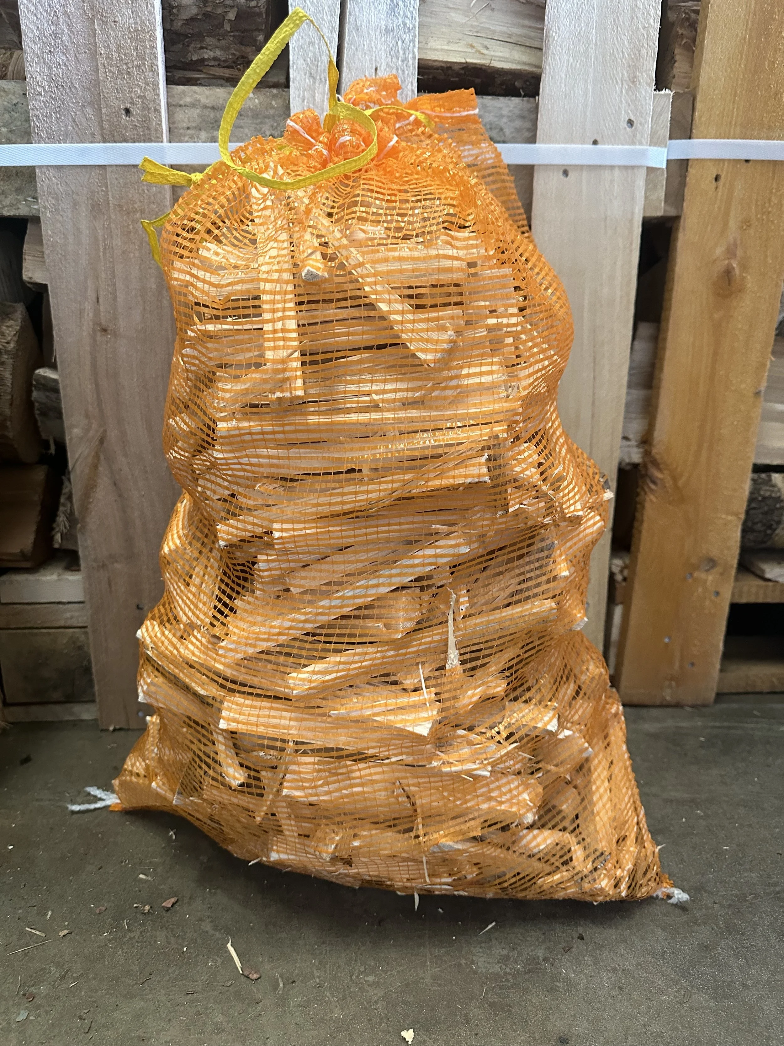 60 x 45 cm nets. loose filled with kiln dried kindling. Perfect for getting your fire started.